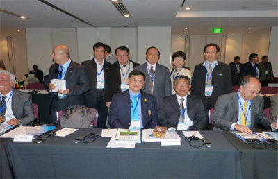 นายสุเทพ น้อยไพโรจน์ เลขาธิการ THAICID นายชัยวัฒน์ ปรีชาวิทย์ กรรมการผู้ทรงคุณวุฒิ THAICID ดร.สมเกียรติ ประจำวงษ์ รองเลขาธิการ THAICID นายทวีศักดิ์ ธนเดโชพล ผู้อำนวยการกองแผนงาน นายวัชระ เสือดี ผู้อำนวยการสถาบันพัฒนาการชลประทาน ดร.อาทร สุทธิกาญจน์ เลขานุการคณะทำงานด้านบริหาร THAICID นางสกุนตลา ผาติธรรมรักษ์ นักวิเทศสัมพันธ์ชำนาญการ และนายธเนศร์ สมบูรณ์ วิศวกรชลประทานชำนาญการ ได้เข้าร่วมประชุม 63rd International Executive Council Meeting และ 7th Asian Regional Conference ณ เมืองแอดิเลด เครือรัฐออสเตรเลีย ในระหว่างวันที่ 22-29 มิถุนายน 2555 ซึ่งประกอบด้วยการประชุม 63rd International Executive Council Meeting การประชุม 7th Asian Regional Conference และงานแสดงสินค้าชลประทานที่ใหญ่ที่สุดในซีกโลกใต้ มีประเทศสมาชิก ICID เข้าร่วมประชุมครั้งนี้ จำนวน 28 ประเทศ จากจำนวน 64 ประเทศ (active country) มีผู้เข้าร่วมประชุมทั้งสิ้นกว่า 400 |