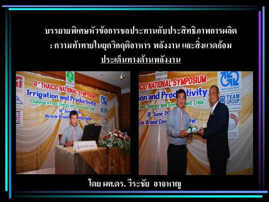 "การชลประทานกับประสิทธิภาพการผลิต : ความท้าทายในยุควิกฤติ อาหาร พลังงาน และสิ่งแวดล้อม"