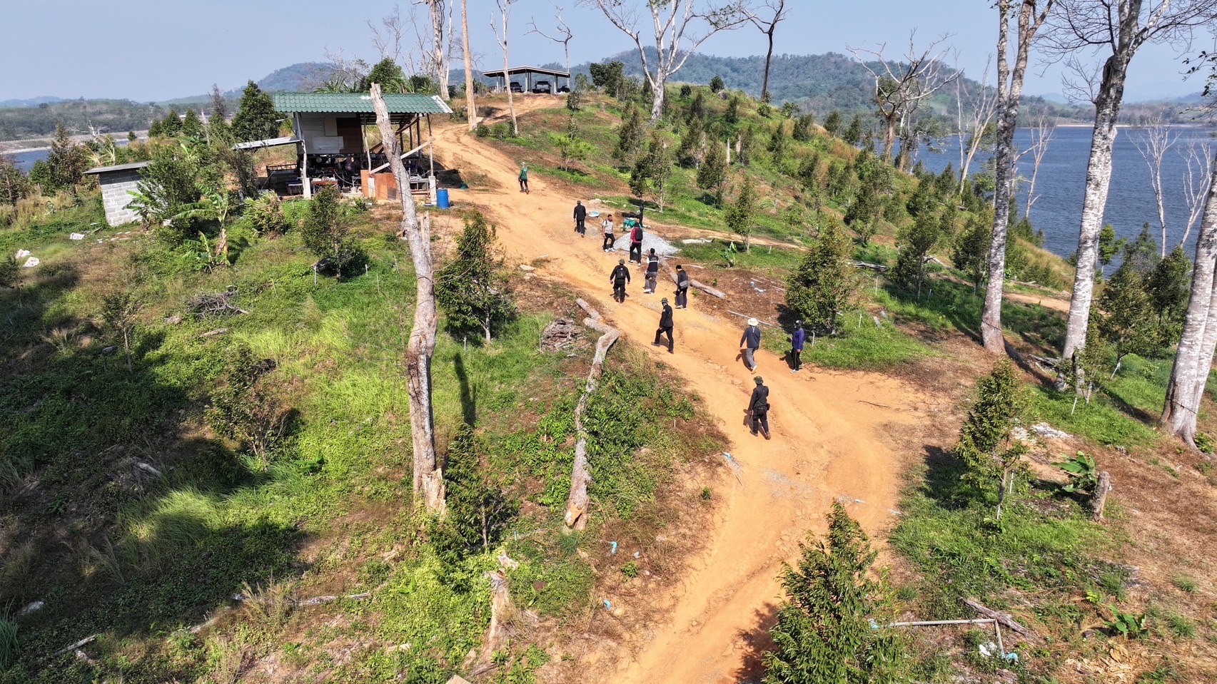 - จุดที่ 1 อยู่ทางทิศใต้ของอ่างเก็บน้ำ พบการปรับพื้นที่เพื่อปลูกต้นทุเรียน ซึ่งเป็นพื้นที่สาธารณะ แต่ไม่อยู่ในความรับผิดชอบของชลประทาน